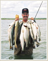 His area bays of fishing consists of all waters, from and in between San Antonio Bay all the way down to Baffin Bay. Which includes area bays such as Copano, St. Charles, Aransas, Mesquite, Ayers, Carlos, Redfish, Corpus Christi, Nueces, the Upper Laguna Madre, and many more bays and saltwater marshes too numerous to mention. He also has many hunting ranches for the various hunting trips he has to offer scattered through South Texas.